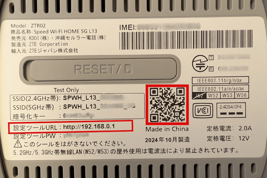 L13のWi-Fiの初期パスワードの場所